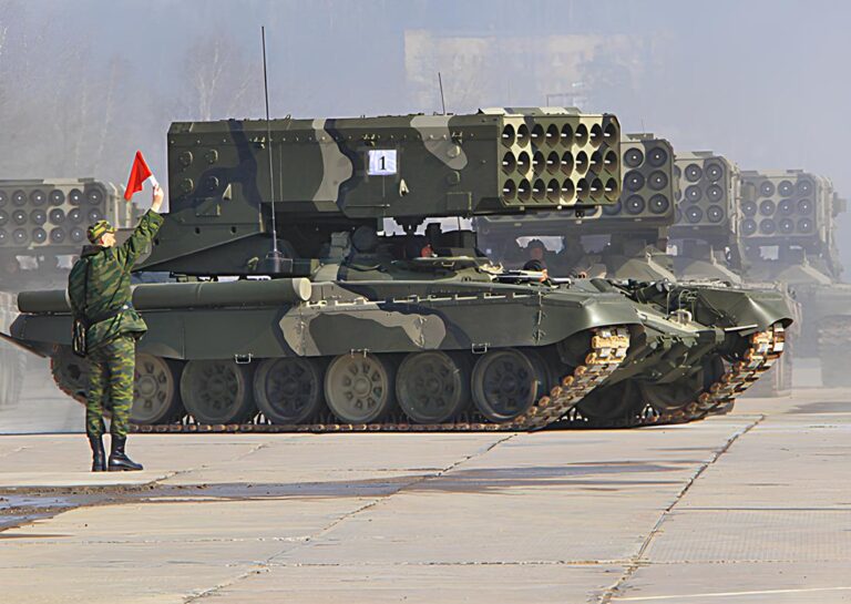 TOS‑1A, těžký ruský raketomet s termobarickou municí, měl spalovat celé oblasti termobarickými salvami. Nedostal však ani šanci vystřelit.