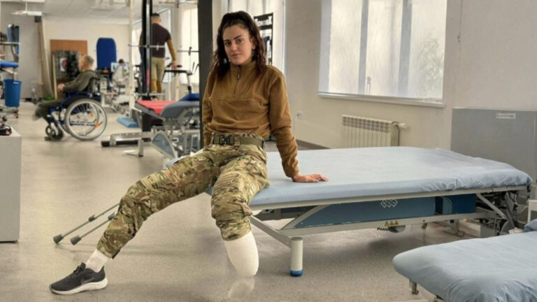 Ukrajinská odstřelovačka Anastasiia Savka přišla o nohu po výbuchu miny. Přesto trénuje s protézou a chystá se zpět na frontu.